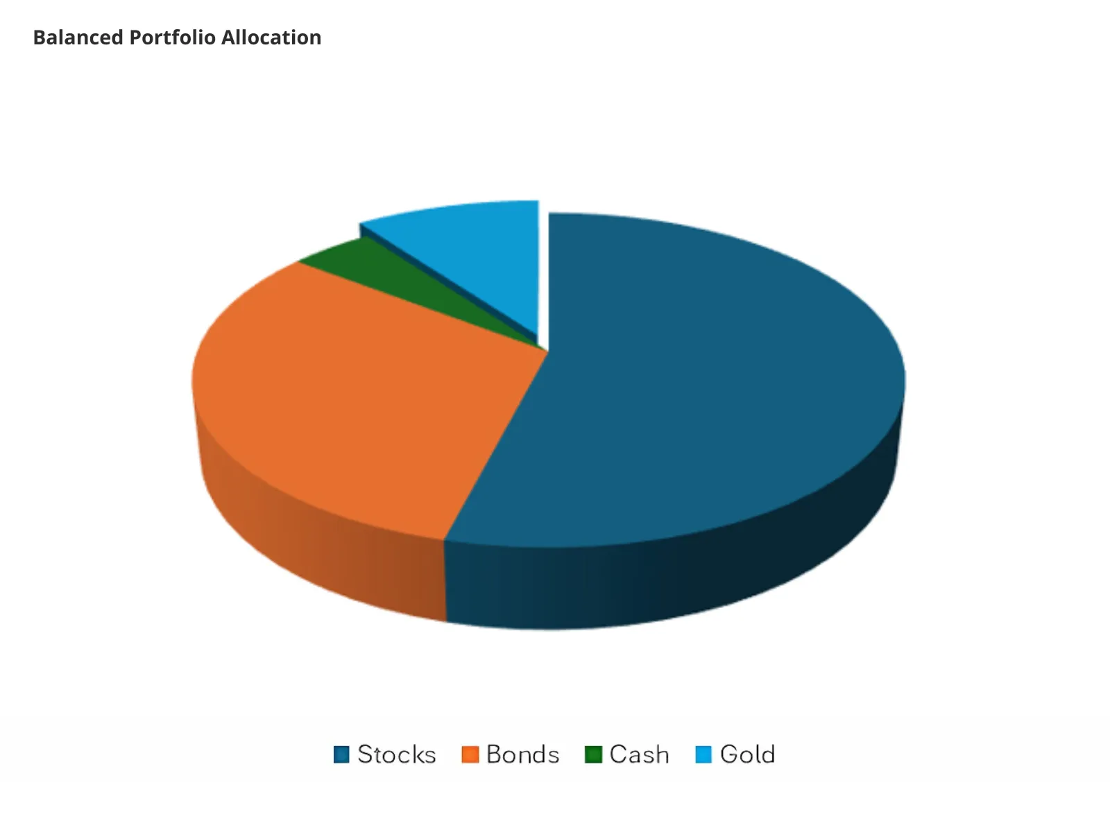 Image: Portfolio allocation graphic showing gold as part of a balanced, diversified strategy.